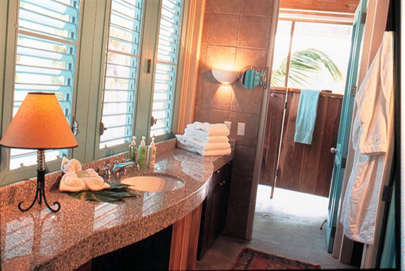 Seize the day in this majestic ocean front villa, complete with private dock, personal plunge pool. Bask in the royal treatment you deserve. Casa Manana's king size bed and lavish Egyptian cotton sheets, positioned in the center of the villa, is surrounded by romantic mosquito netting and a 180 degree wrap-around view of the Caribbean. Other indulgent features include granite counter tops and exotic hardwood cabinets.
